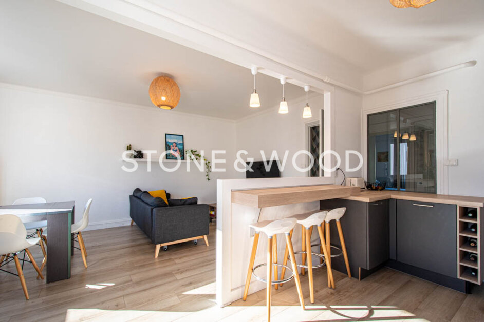 Magnifique appartement de type 4 d'une superficie de 88 m2 habitables. Lumineuse pièce de vie avec cuisine équipée semi-ouverte, salle-à-manger et salon avec accès balcon. 3 chambres. 1 salle-de-bains. Wc indépendant. Un studio de 17 m2 habitables compléte ce bien. Cave.