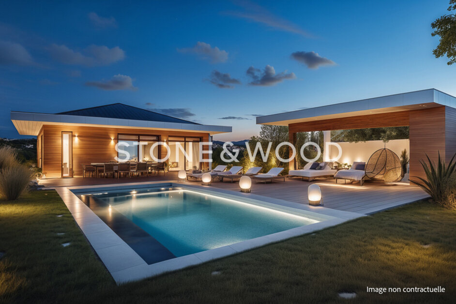 Ce projet inclus des prestations de belle facture : parquet en chêne, carrelage grès cérame, menuiseries aluminium, brises soleil orientables et volets roulants dans les chambres, pompe à chaleur, piscine chauffée (4 x 8 m) avec rideau immergé, portes de garage motorisées, garde corps vitrés, cour goudronnée, etc. Il peut être entièrement remodelé suivant vos attentes.