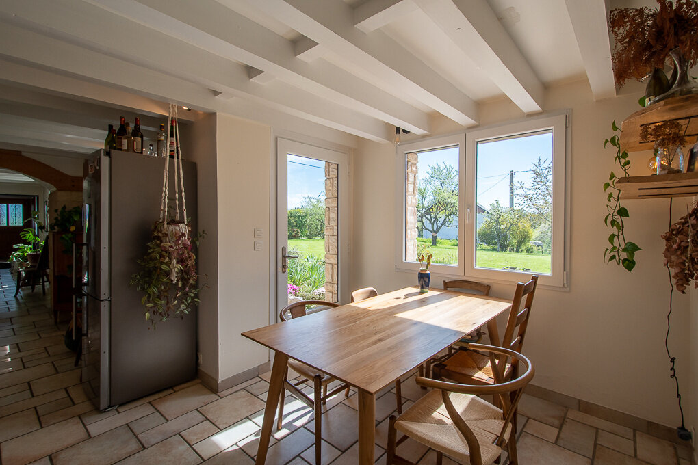 Entre Annecy et Genève, dans un environnement calme et champêtre avec vue sur les montagnes. Charmant corps de ferme d’env. 160 m2 habitables en mitoyenneté d’une grange inoccupée. Entièrement rénovée, la propriété se compose d’un hall d’entrée accessible par une véranda. Spacieuse pièce de vie avec salon/séjour, poêle à bois et cuisine ouverte équipée avec accès terrasse et jardin. Cellier/buanderie avec WC visiteurs. 3 chambres avec grands placards intégrés dont une suite parentale salle-de-bains et WC. Salle de douche. Combles aménageables. DPE : C Propriété établie sur une parcelle arborée d’environ 2000 m2 avec potager, arbres fruitiers et places de parking. Située à 30 min de la douane de Bardonnex et Thonex-Vallard, à 35 min d’Annecy et à 10 minutes de la Roche-sur-Foron, de l’autoroute et de la gare CEVA. Les informations sur les risques auxquels ce bien est exposé sont disponibles sur le site georisques.gouv.fr Honoraires TTC à la charge du vendeur.