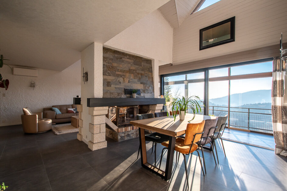 Fillière, splendide villa à l'architecture avant-gardiste et particulièrement moderne. Elle présente 300 m2 habitables, comme suspendus face à un panorama à couper le souffle. Dès l'entrée, la luminosité et la vue attirent le regard puis la maison laisse découvrir ses volumes à la fois impressionnant et chaleureux.