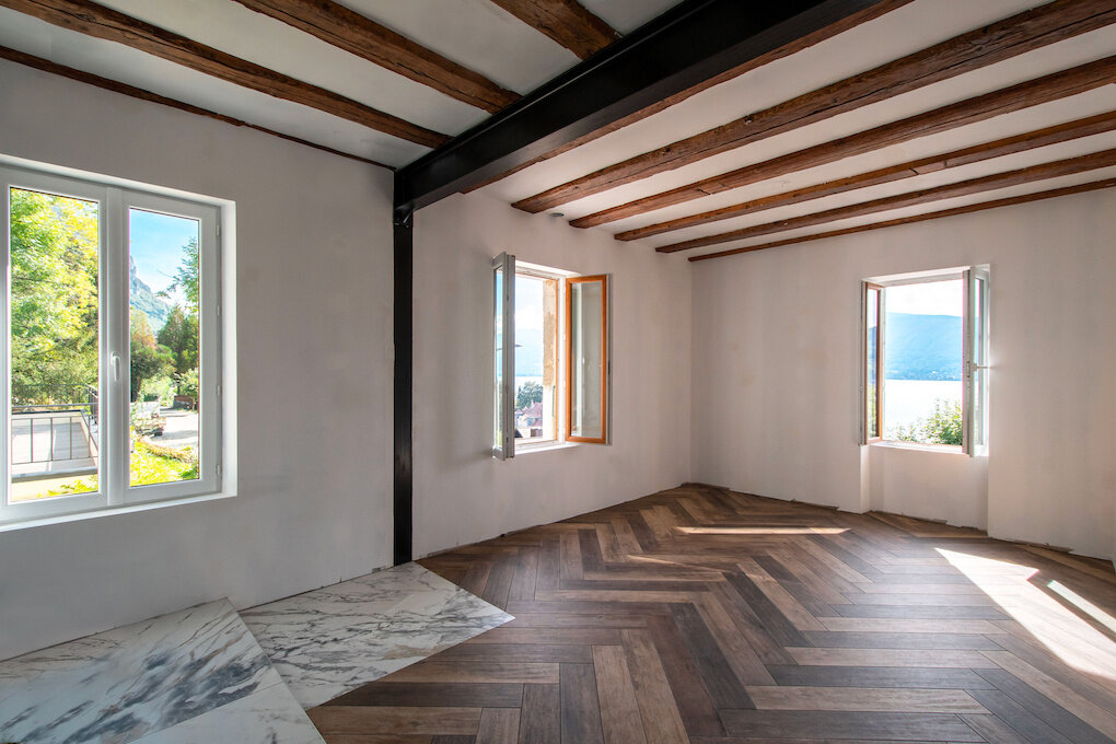 Situé à l'entrée de Veyrier-du-Lac, au sein de l'une des premières demeures de Maître édifiées sur la commune, appartement de 122,4 m2 avec terrasse de 70 m2 profitant d'une vue à couper le souffle sur le lac et les montagnes.