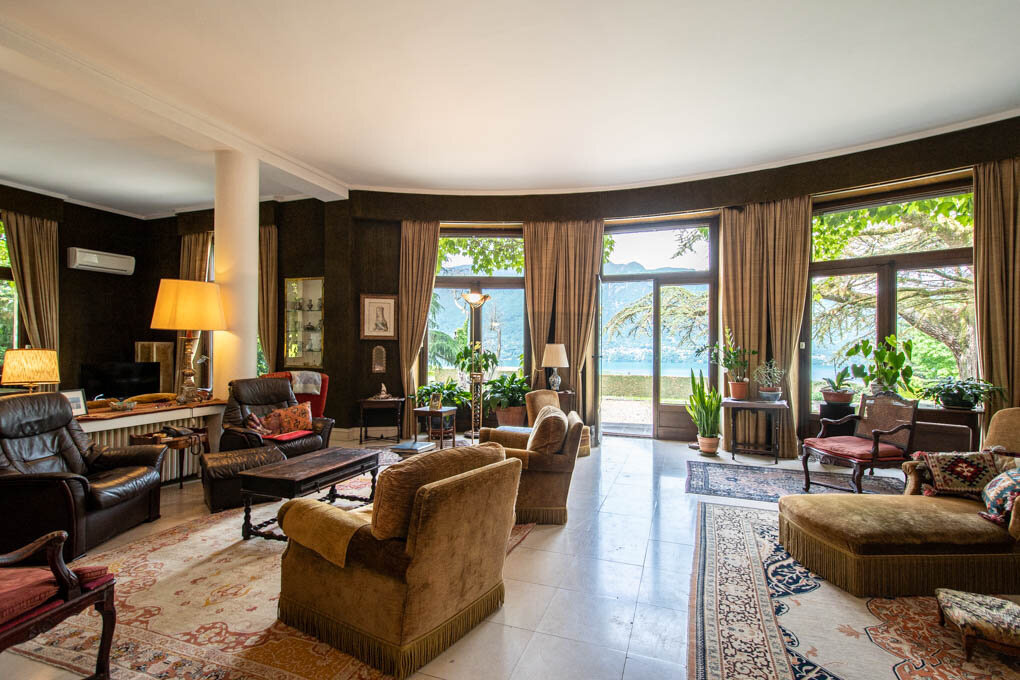 La propriété se compose de 4 bâtis dont une somptueuse demeure principale du XIXe siècle d'une surface d'env. 670 m2 utiles avec vaste salon/séjour bénéficiant d'une belle hauteur sous plafond et d'un accès direct au jardin avec vue lac. Salon et salle-à-manger. Cuisine équipée indépendante. 7 chambres. Combles aménageables et sous-sol complet avec caves.