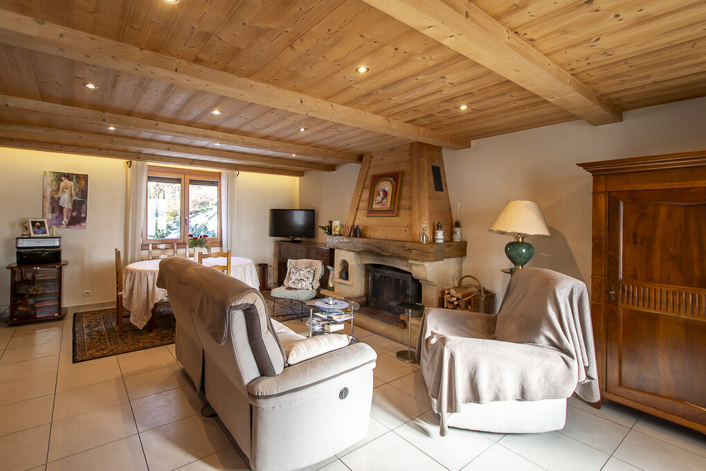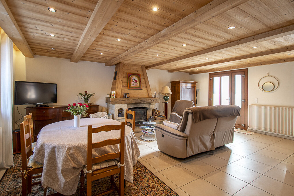 Implantée sur plus de 3 hectares de terrain (pré, forêt et rivière), cette propriété unique développe environ 115 m2 habitables et a été construite autour d’un mazot d’origine datant de 1857, offrant une atmosphère chaleureuse.