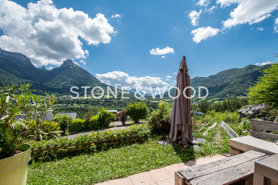 Dans un cadre calme et champêtre à 15 min du centre d'Annecy et 10 min de l'échangeur Annecy Nord. Appartement T2 Bis de 66,18 m2 loi Carrez avec jardin privatif situé au rez-de-chaussée d'une maison d'habitation. Le bien se compose d'une pièce de vie lumineuse avec cuisine semi-ouverte, salon et salle-à-manger. Grande terrasse avec vue imprenable sur les montagnes. 2 chambres dont une en-suite avec salle d'eau. 2 places de parking dont une couverte. DPE : F Le bien est soumis au statut de la copropriété (3 lots). La quote-part budget prévisionnel charge vendeur (dépenses courantes) est d'environ 200 €/an Honoraires TTC à la charge du vendeur