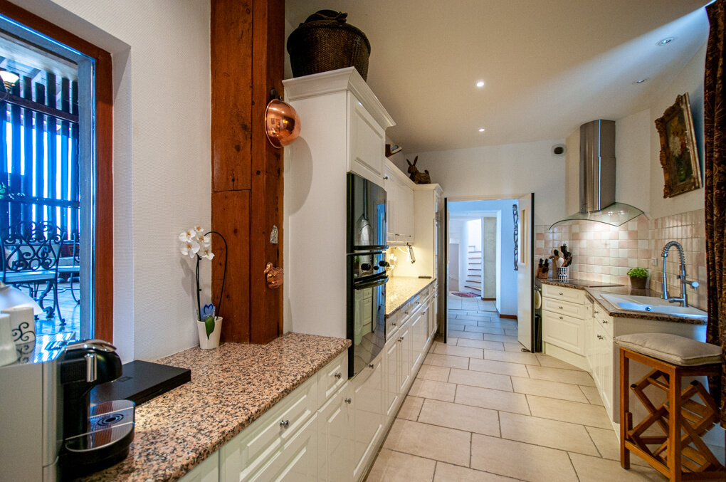 Propriété mitoyenne offrant une surface habitable et 255 m2 et environ 438 m2 utiles et se compose d'une spacieuse pièce de vie avec salle-à-manger, double salon, bibliothèque et balcon. Cuisine indépendante avec cellier, buanderie et accès au jardin d'hiver. 3 chambres dont une suite parentale avec salle-de-bains, dressing et bureau. Caves. Triple garages et places de parking.