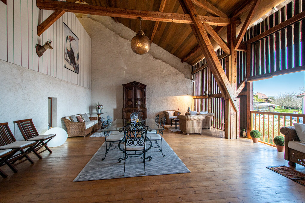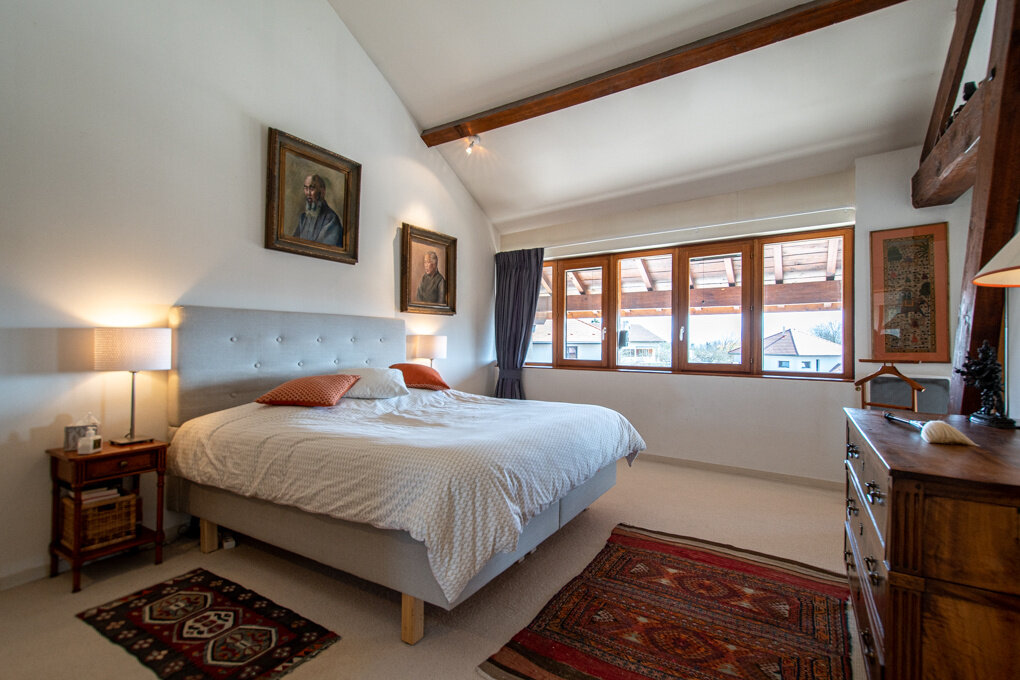 Charme, luminosité et beaux volumes caractérisent ce magnifique corps de ferme entièrement rénové avec des matériaux de haute qualité. Vue dégagée sur le Mont-Blanc, le Jura et le lac Léman.