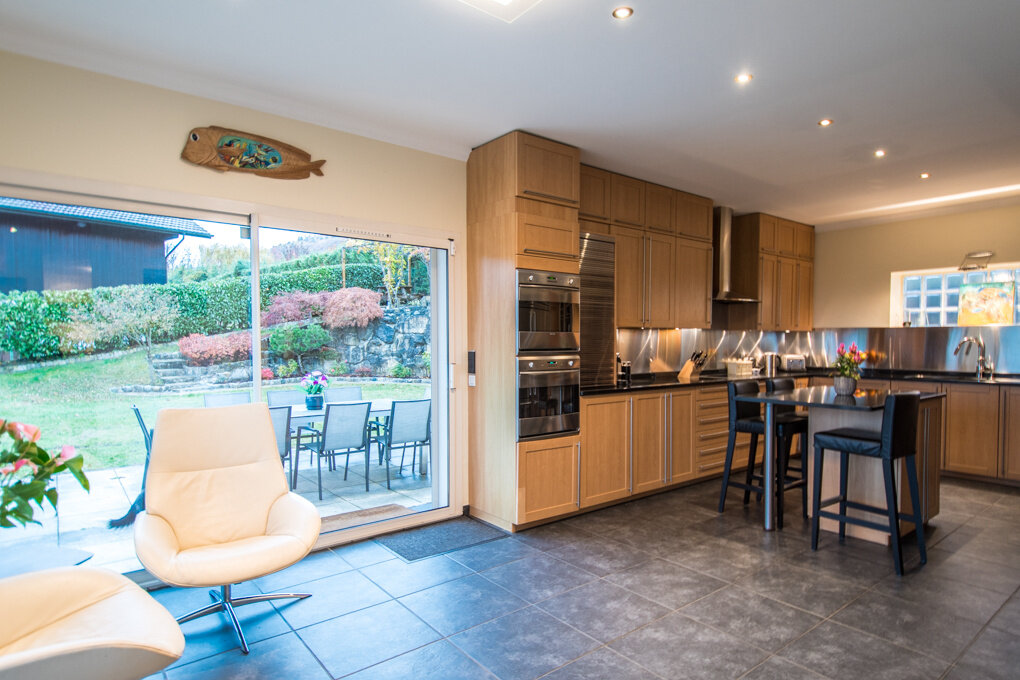 CENTRE-VILLE. Magnifique villa de 334 m2 avec vue dégagée. Terrain de 1328 m2. Bel espace vie avec salon, salle-à-manger, bibliothèque. Grande cuisine équipée avec accès terrasse. Cellier. 5 chambres dont une suite parentale avec dressing, salle de bains et hammam. Sous-sol complet comprenant un studio indépendant. Salle de sport. Bureau. Portail électrique. Vue sur le Mont-Blanc.