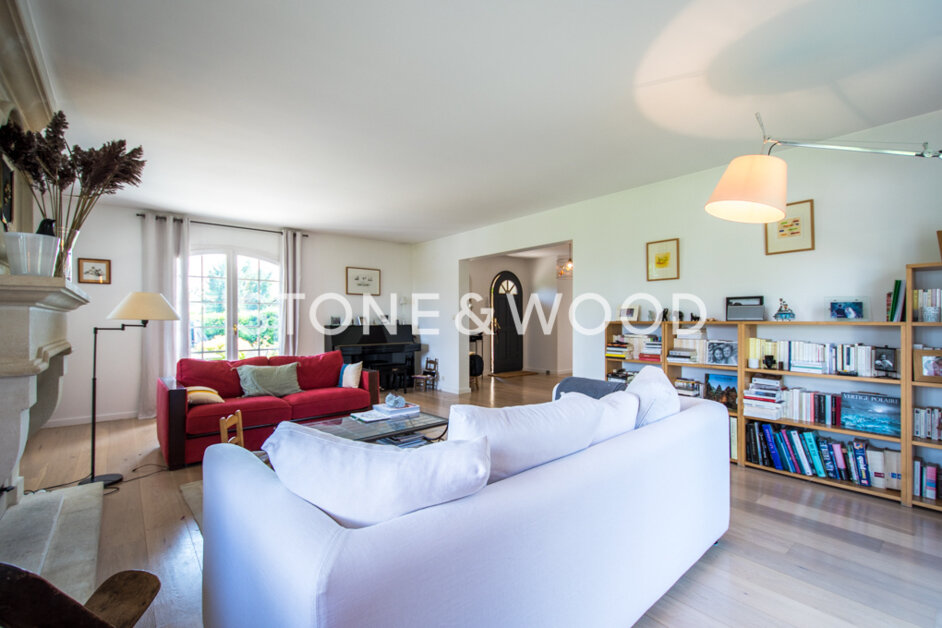 Charme et authenticité pour cette propriété de 250 m2 habitables mélangeant le moderne et l'ancien. La maison possède également un grand garage double, l'ensemble implanté sur une belle parcelle de 1'084 m2. Les finitions de bonnes qualités et les espaces vous séduiront. Cuisine équipée indépendante avec accès terrasse, grand séjour avec cheminée donnant sur le jardin. 2e salon. Bibliothèque. 5 chambres dont une grande suite parentale avec dressing et salle d'eau. Grand sous-sol complet comprenant notamment une cave-à-vin et une salle-de-jeux avec cuisine équipée. Cadre calme et résidentiel. Golf de Maison-Blanche à 2 km, aéroport de Genève à 15 minutes, Centre commercial à 5 kms. DPE : D
