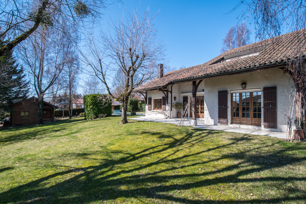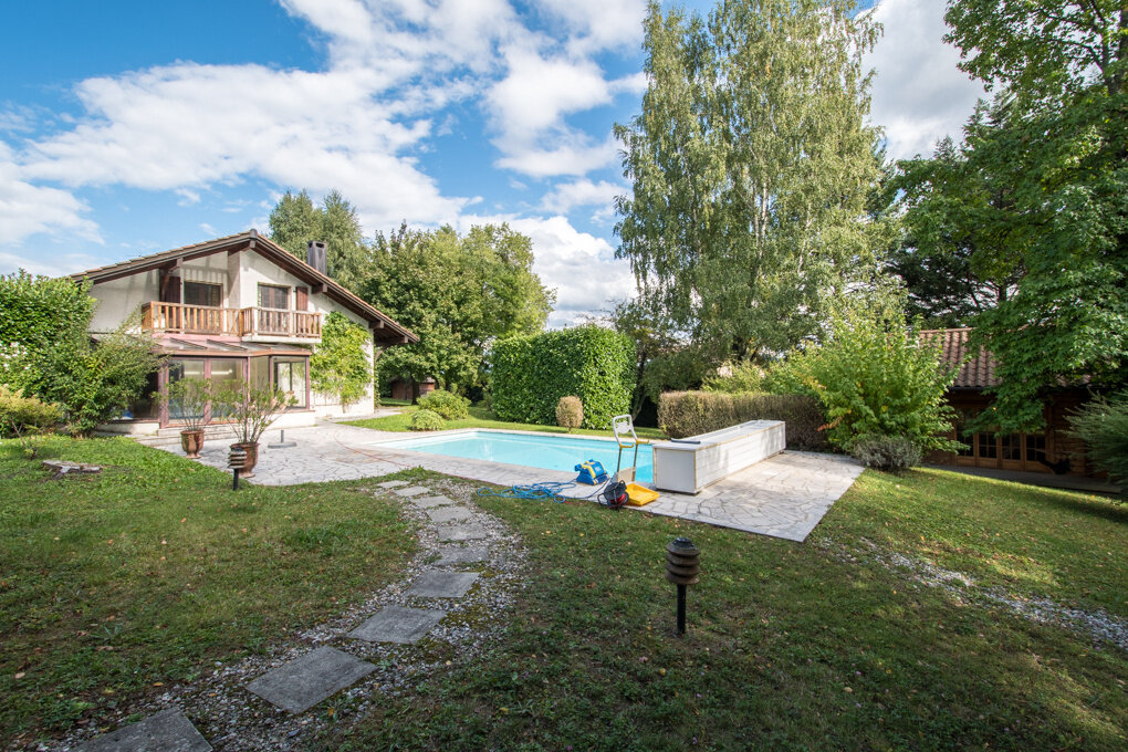 À deux pas du centre de Prévessin-Moëns, charmante propriété de 232 m2 habitables établie sur un terrain clos et arboré de 1681 m2 constructibles avec piscine et pool house.