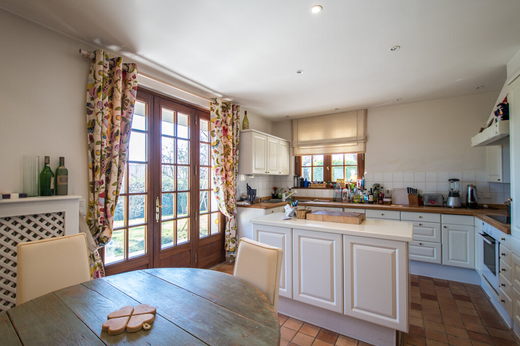 Spacieuse pièce de vie composée d'un salon/séjour avec cheminée et plusieurs accès sur la terrasse er le jardin. Cuisine indépendante équipée. Véranda donnant sur la piscine. 5 chambres dont une avec accès terrasse.
