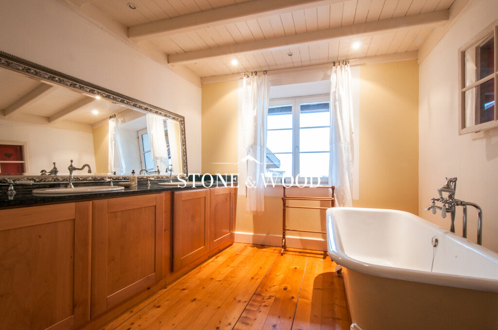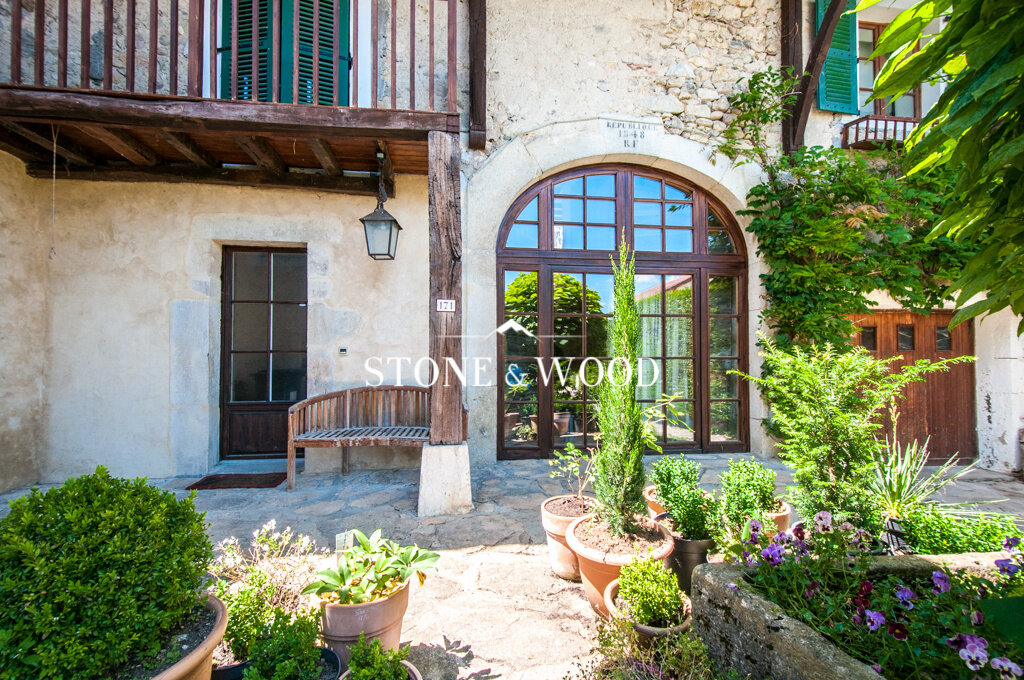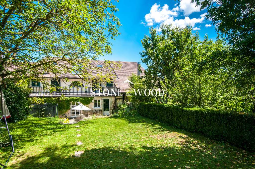 Charme et caractère pour cette maison de village. Ancienne grange de 280 m2 habitables entièrement rénovée et implantée sur un terrain de 900 m2. Magnifique espace vie cathédrale de 70 m2. Cuisine équipée avec accès jardin. Salon TV. 5 chambres, 2 mezzanines. Garage double + 4 places de parking. Buanderie. 2 belles terrasses. Vue Jura et Alpes. DPE : C