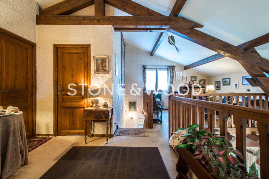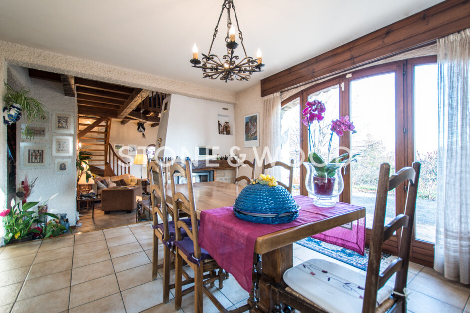 Belle maison résidentielle de 150 m2 habitables environ. Implantée sur une parcelle de 1'675 m2. Cuisine indépendante avec cellier, salle à manger et salon cathédrale avec cheminée traversante et accès terrasse. 2 chambres dont une grande suite parentale avec dressing et salle-de-bains. Possibilité d'une 3ème chambre. Grand sous-sol complet. Garage double. Secteur calme et résidentiel. Vue dégagée sur le Mont-Blanc. DPE : NC